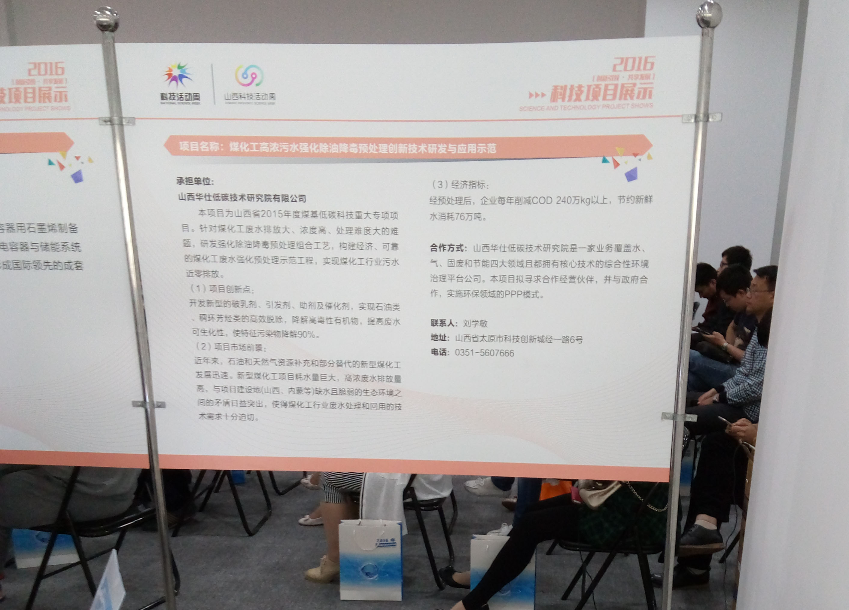 山西华仕作为科技成果转化企业展示了“煤化工高浓污水强化除油降毒预处理创新技术研发与应用示范”项目。